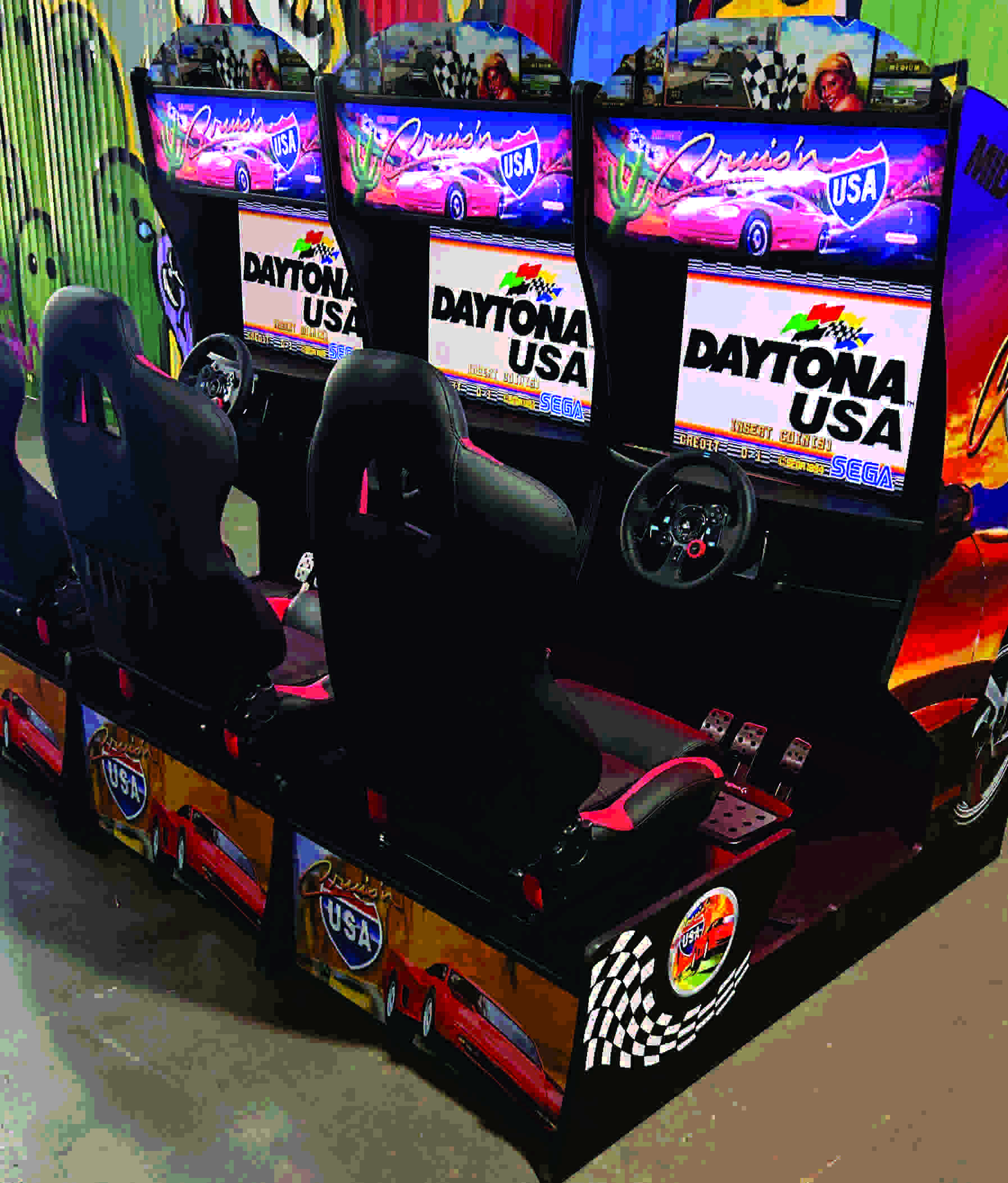 A máquina é ideal para relembrar os games de corrida retrôs através do sistema multijogos com 60 jogos, incluindo mais de 10 jogos linkados entre os três jogadores, e também se divertir com os jogos atuais quando conectado ao seu PlayStation.